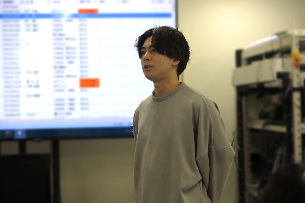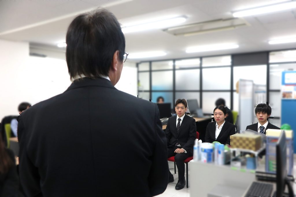 まず社長からのご挨拶をいただき、その後、先輩社員の方々から励ましの言葉をかけていただきました。
