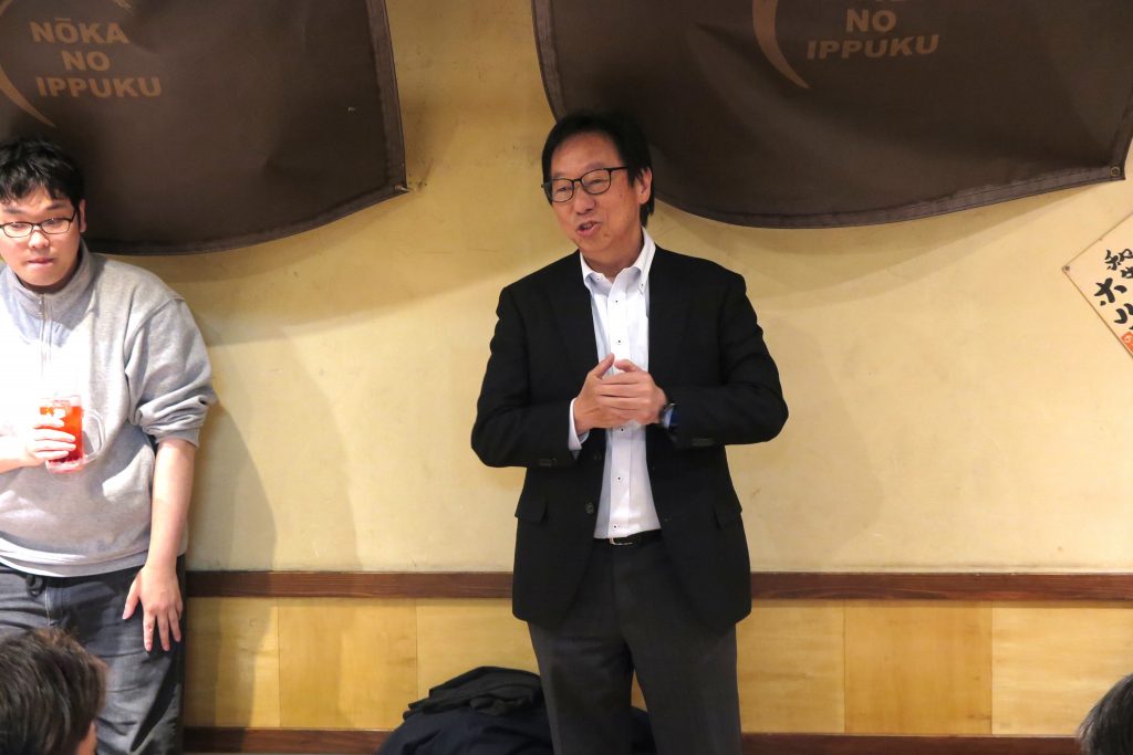 社長から歓迎の言葉をいただき、部長の乾杯で歓迎会がスタートしました。
